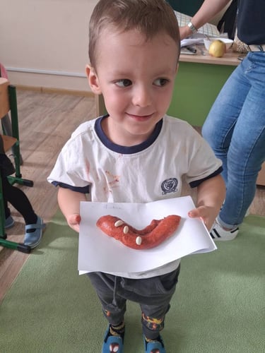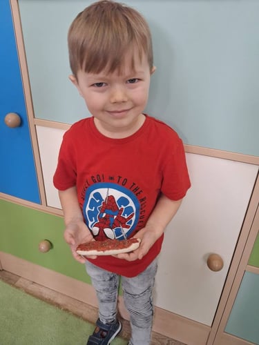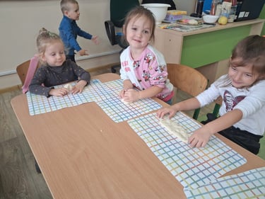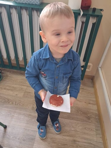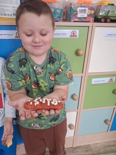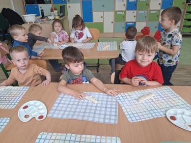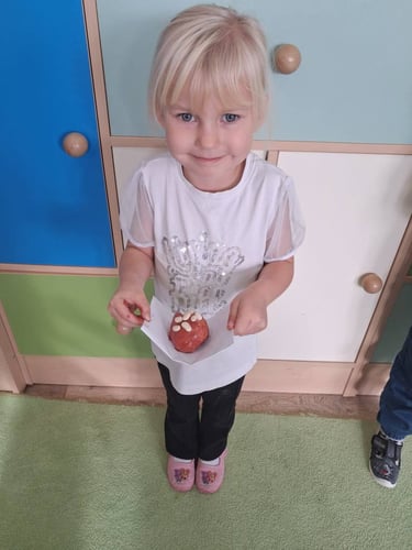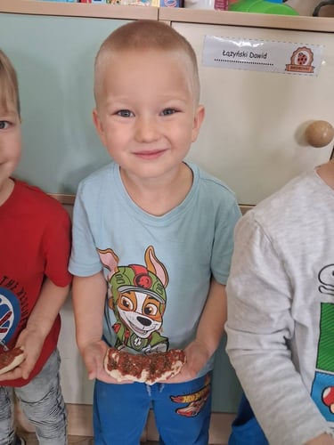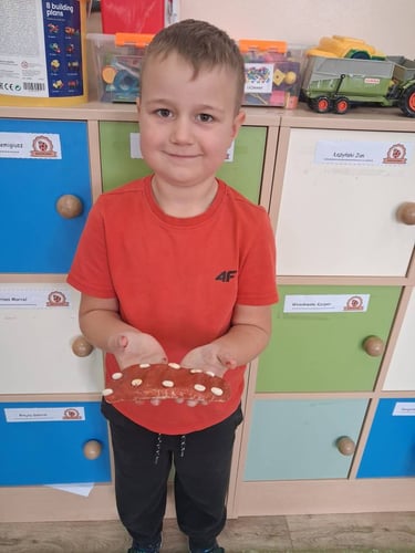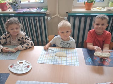Zamiast prawdziwego pieczenia, dzieci stworzyły piękne prace plastyczne oraz własne „chlebki” z masy solnej . Było dużo radości, kreatywności i zabawy – a nasze „wypieki” wyglądały jak prawdziwe!