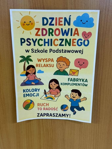 Dziś nasza szkoła zamieniła się w przestrzeń pełną uśmiechu, współpracy i pozytywnej energii! Z okazji Światowego Dnia Zdrowia Psychicznego pedagog i psycholog szkolny przygotowali dla uczniów wyjątkowe zajęcia, które pokazały, jak ważne jest dbanie o swoje samopoczucie – każdego dnia, nie tylko od święta.