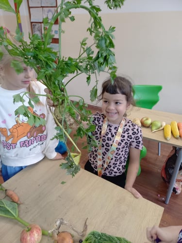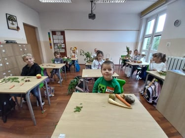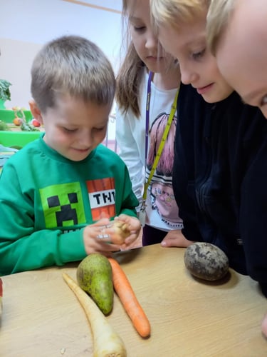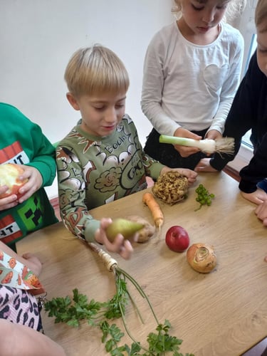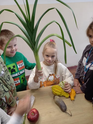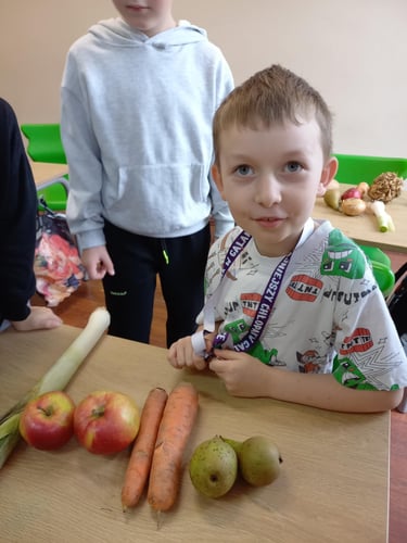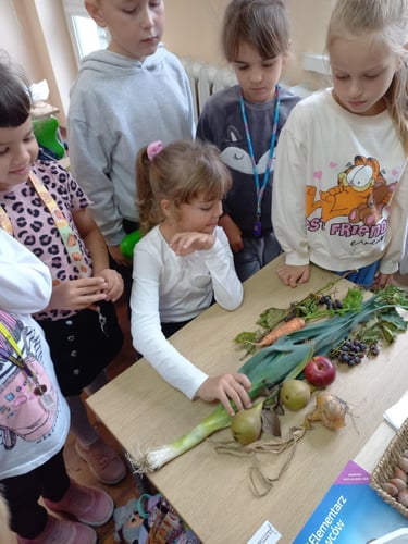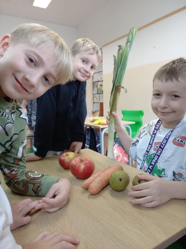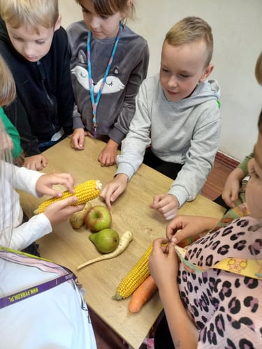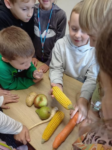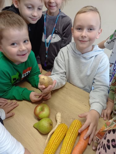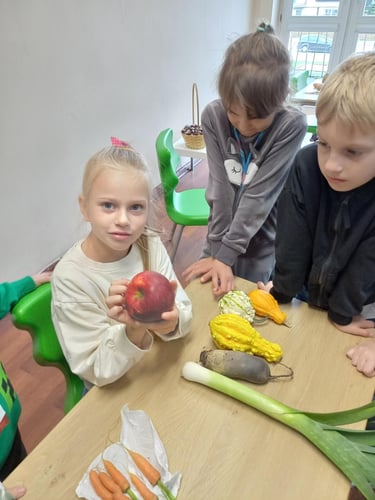 Uczniowie mieli okazję poznać i rozpoznać dary jesieni – kolorowe owoce i warzywa, które w tym okresie królują na straganach i w naszych kuchniach.