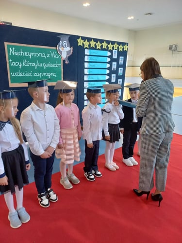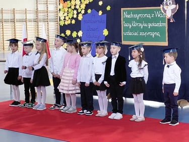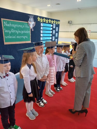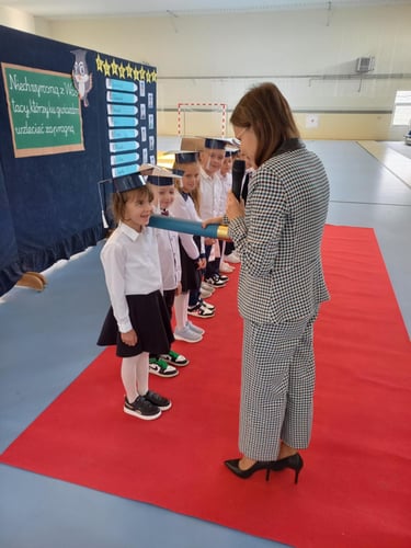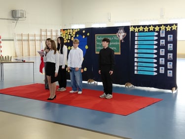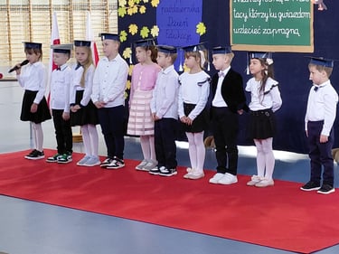Dzisiejszy dzień to także szczególny moment dla naszych najmłodszych uczniów — pierwszoklasiści złożyli uroczyste ślubowanie i zostali pasowani na uczniów naszej szkoły